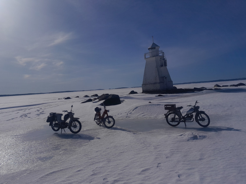 Joskus harrasteitakin. Jäämopoilua päijänteellä talvella 2023 ja ensiks majakalle.