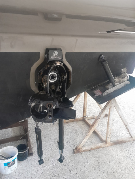 Sea Ray:n Mercruisereiden ohjaustapit vuotivat. Vaihdettiin uudet kilpiä irrottamatta.