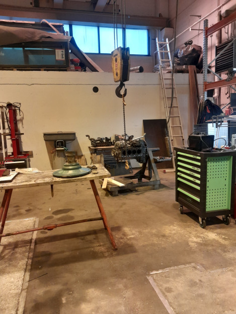 Syksyllä päästiin muuttamaan ja verstasta hahmolleen. Nyt on kattonosturi ja muutenkin puitteet kunnossa.