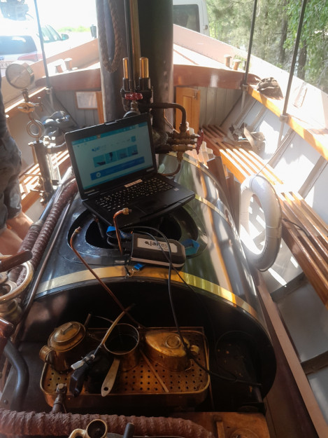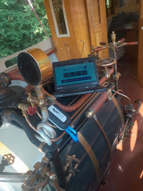 Vierailla vesillä: Saimaalla hinaajan MTU 12 2000 diagnostiikka hommia.